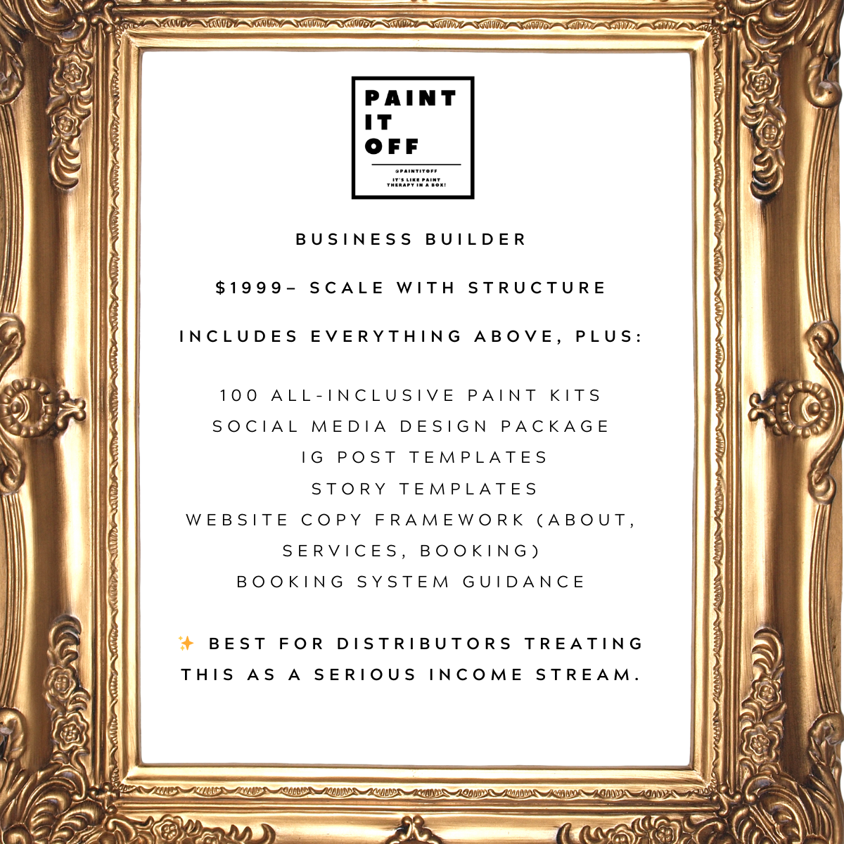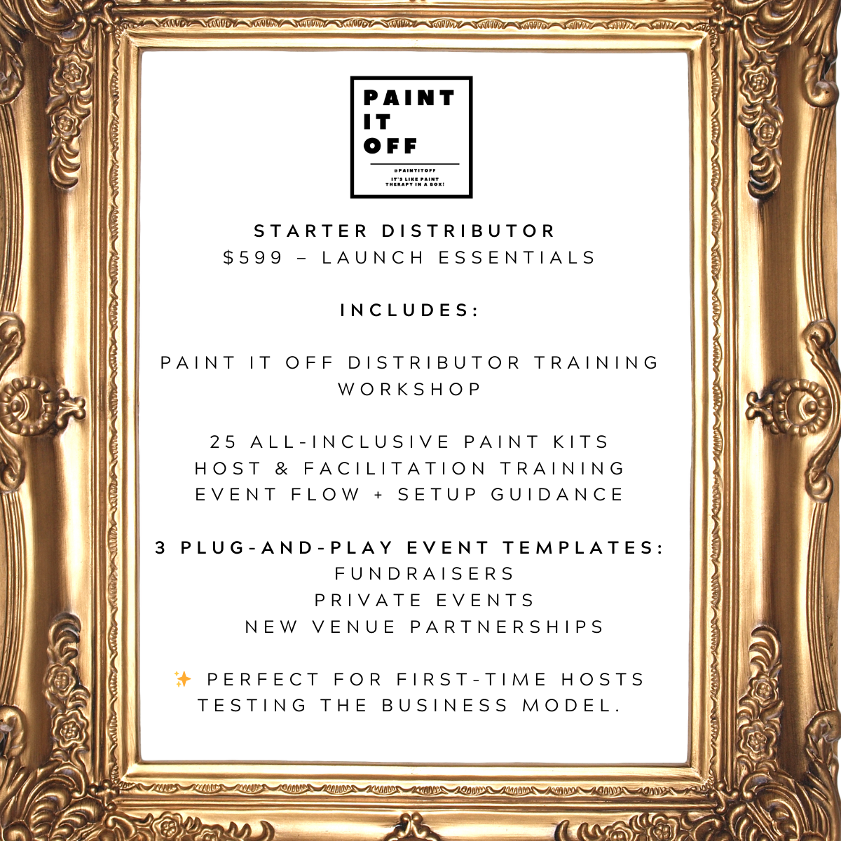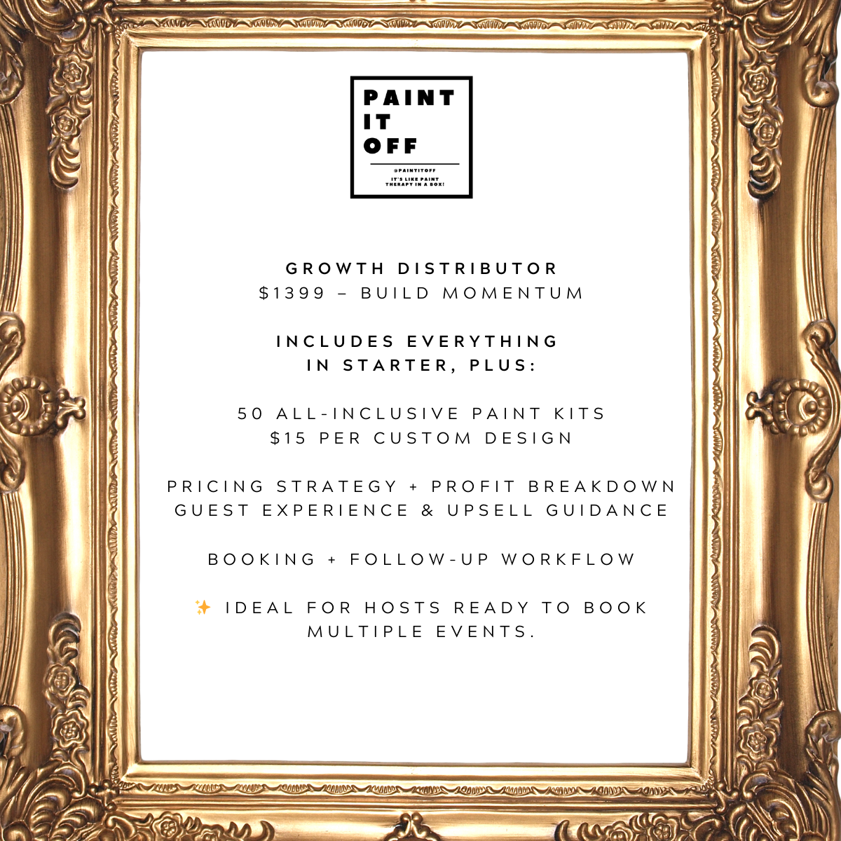 The Paint It Off Distributor Workshop is a step-by-step training experience designed to help you launch, host, and grow a profitable paint party business. You’ll receive hands-on training, ready-to-use kits, and proven templates so you can start booking immediately.